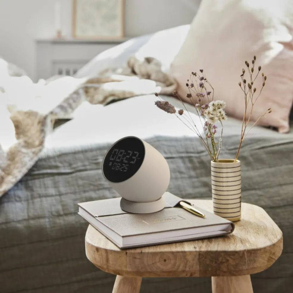 For at slukke alarmen skal du trykke på knappen, og for at snooze løftes den op og vendes på hovedet. Det betyder, at du slipper for at famle rundt i mørket eller kæmpe for at finde snooze-knappen.