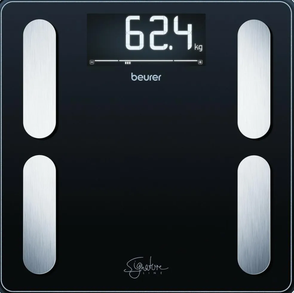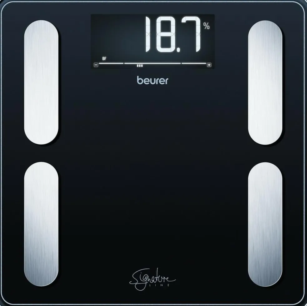 Der er plads til 10 brugere på vægten. Vægten er udført i 8 mm tykt sikkerhedsglas og 4 elektroder i børstet rustfrit stål. Det sorte display bidrager til et moderne design.