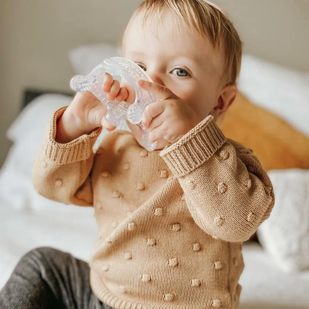 Det smarte design er med til, at udvikle barnets motoriske evner til leg og finmotorik, samtidig med at din lindre irritation i gummerne ved tandfrembrud.