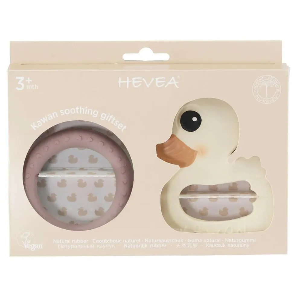 I dette fine sæt kommer Kawan bideringen i HEVEAs klassiske, cremede hvide farve, mens den runde bidering har en skøn lyserød tone – Powder Pink farven.