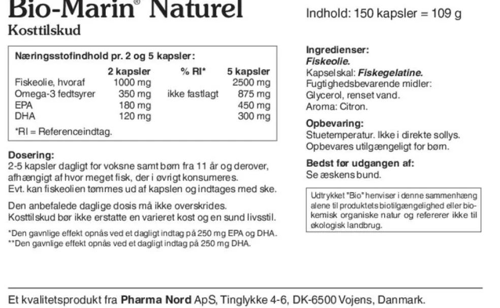 | Fiskeolie | 1000 mg | 2500 mg |