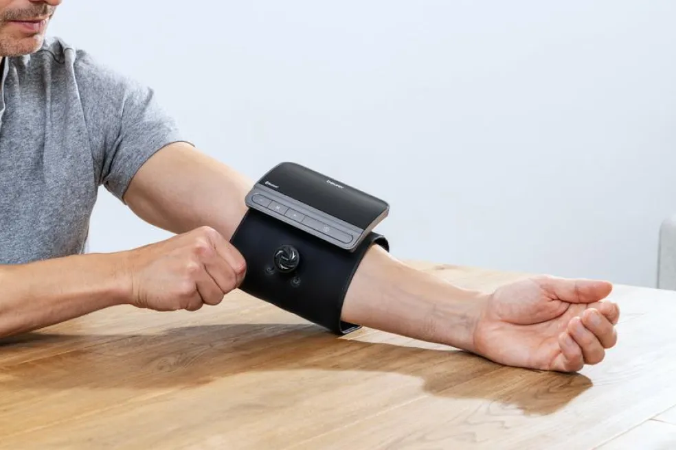 Denne fuldautomatiske blodtryks- og pulsmåler til overarmen har både en LED-risikoindikator og arytmidetektion. Derfor klassificerer den først og fremmest din måling med en farvet LED-skala – på denne måde kan du følge med i, hvordan det går med dit blodtryk. Derudover registrerer og advarer den om uregelmæssig hjerterytme.