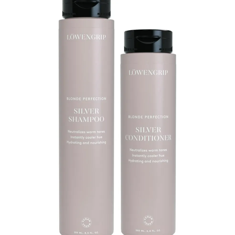 Duopack! Blonde Perfection Silver er en plejende sølvserie sder effektivt neutraliserer varme og gule toner i blondt og gråt hår, for en øjeblikkeligt køligere nuance. Den farvebevarende serie virker også til at fugte, blødgøre og give glans. Produkterne er beriget med varmebeskyttende ingredienser samt moringaolie og granatæbleekstrakt til hydreret og glansfuldt hår. Kan også fjerne varme toner i farvet mørkt hår. Med en uimodståelig duft af mango og fersken.