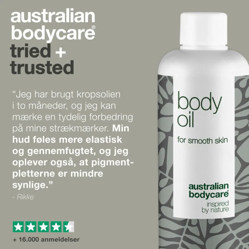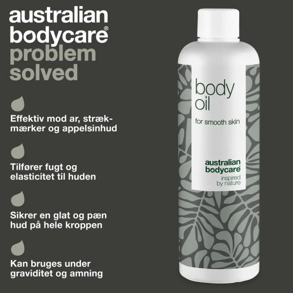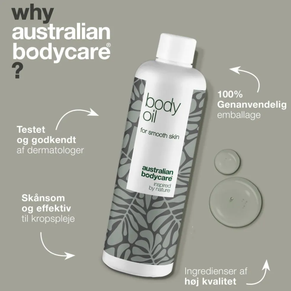 Kropsolie med australsk Tea Tree Oil sikrer en blød og glat hud. Body Oil kan bl.a. bruges til at forbedre udseendet af strækmærker, appelsinhud, ar og andre ujævnheder i huden.