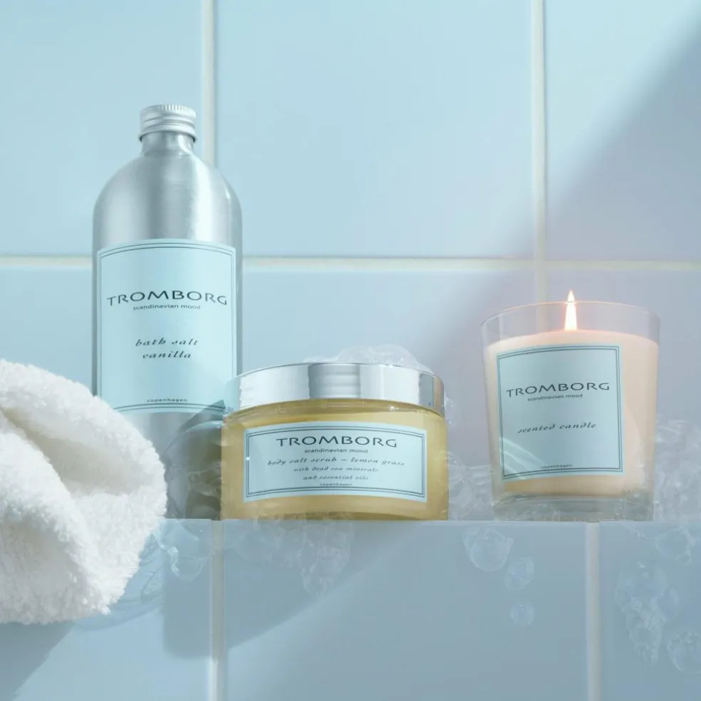 Tromborg TB Body Salt Scrub Lemon Grass 350 ml er en blidt exfolierende saltscrub, der fjerner døde hudceller og giver huden et mere levende skær. Denne hjemme-spa-oplevelse efterlader din hud blød som en nyfødts. Formuleret med fint salt fra Det Døde Hav, mandelolie og æteriske olier, forkæler denne velduftende blanding dine sanser med en opløftende duft af lemon grass, mens den effektivt exfolierer og blødgør. I vintermånederne, hvor huden ofte bliver tør og kedelig, er denne saltscrub en sand lifesaver. Den fjerner tørre flager og giver huden en frisk glød. En perfekt julegave, adventsgave eller værtindegave til alle, der fortjener lidt ekstra forkælelse og velvære.