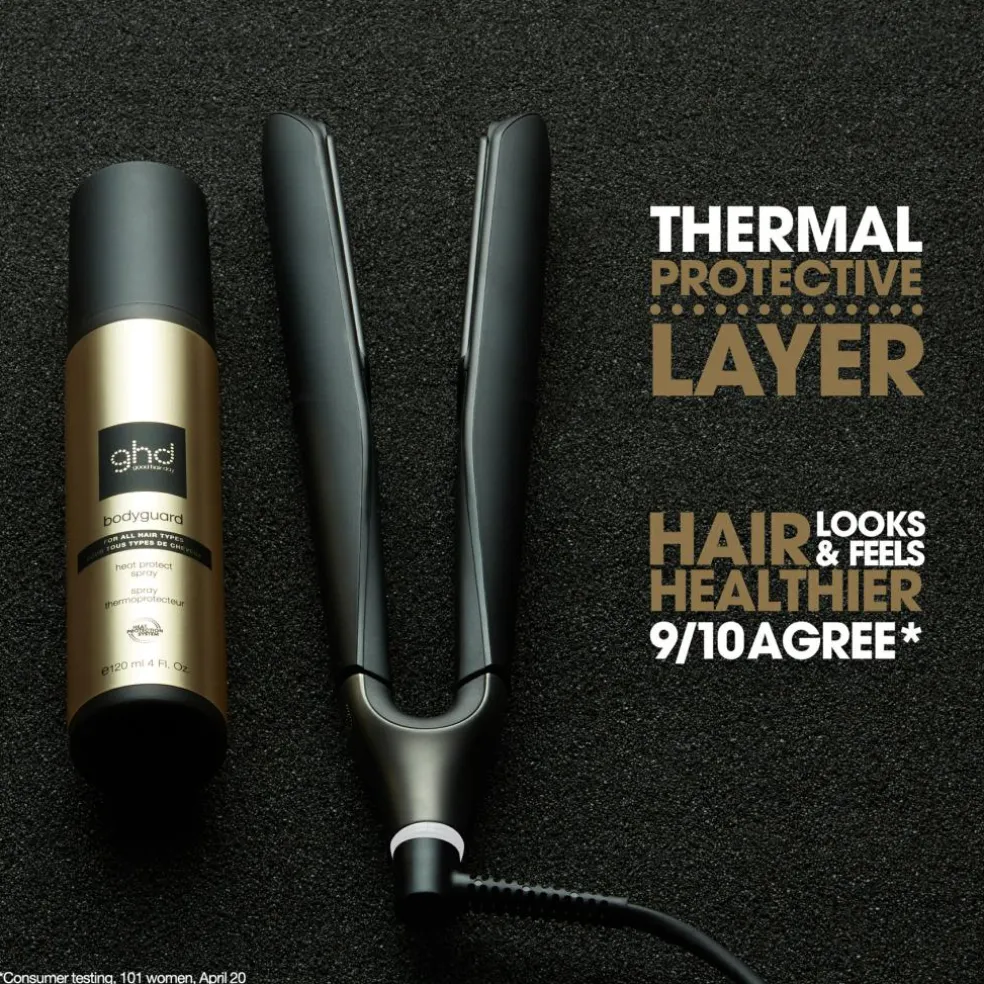 Med ghd Bodyguard Heat Protect Spray kan du have fuld tillid til, at dit hår er i de bedste hænder. Denne innovative formel er skræddersyet til at håndtere de udfordringer, dit hår står over for under varmestyling. Den beskytter hver enkelt hårstrå og skaber en skjold mod de potentielt skadelige virkninger af høje temperaturer, der kan føre til skader og svækkelse af håret.