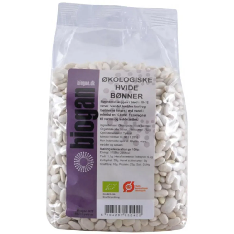 Hvide bønner. Har et højt protein- og fiber indhold. Kan bruges til varme og kolde retter