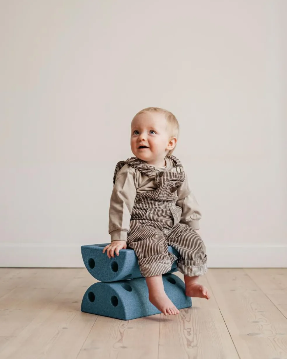 Brug skamlen til alverdens motoriske aktiviteter — fra mavetid til balanceøvelser. Rul frem og tilbage, eller øv dig i at holde balancen.