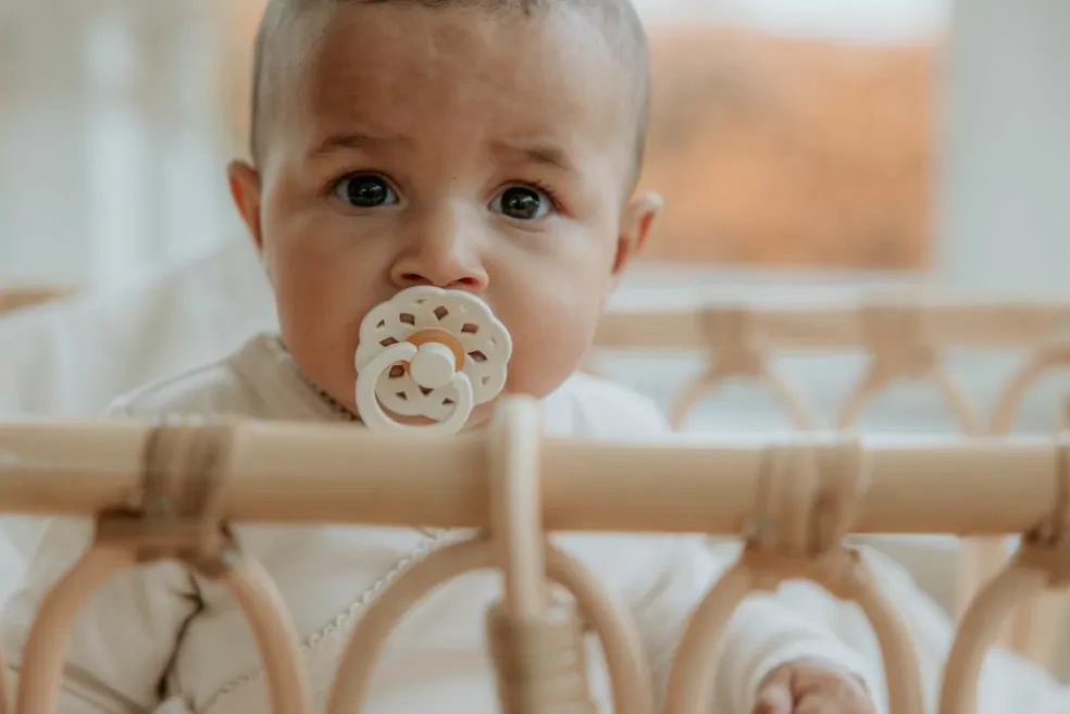 Det klassiske runde skjold med en rund nippel af naturgummilatex sikrer, at dit barn beroliges på en sikker og naturlig måde.