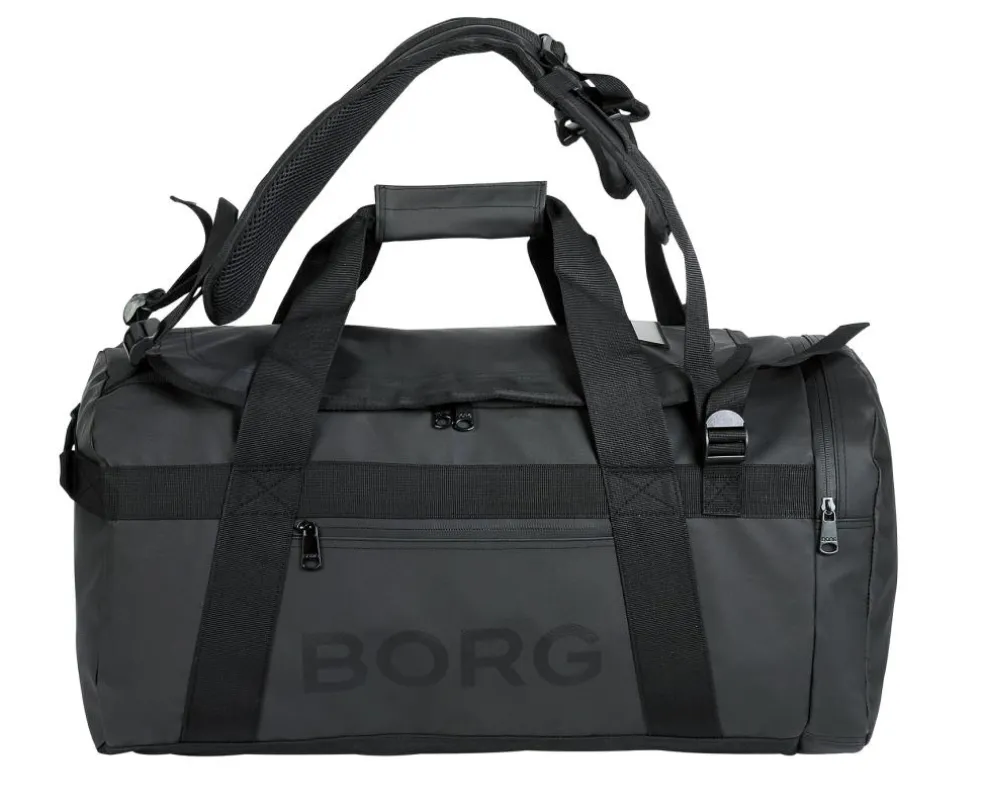 Fremstillet af det gummiagtige materiale TPE og rummer 55 liter. Indersiden af tasken har lommer i mesh, tilgængelig i to farver med det ikoniske Borg-print på siden.