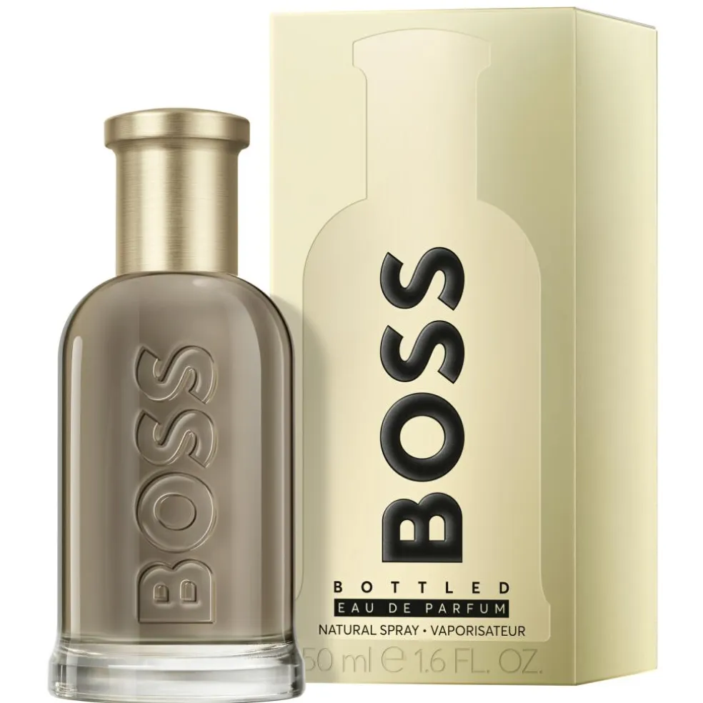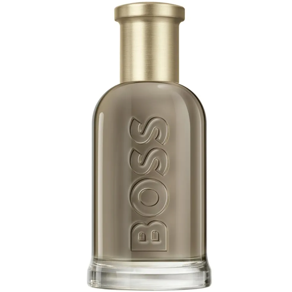 Den ikoniske BOSS Bottled-flakon i klart glas er her opdateret med en børstet guldfarvet duftprop – et udtryk for tidløs elegance og moderne styrke.