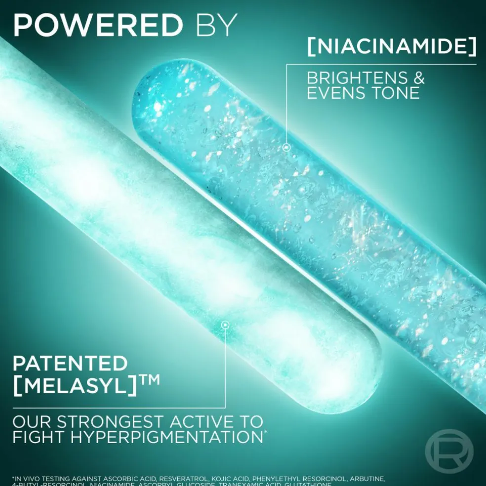 - Med niacinamid som hjælper til at reducere synligheden af mørke pletter (mærker efter akne, pigmentering samt sol- og alderspletter)