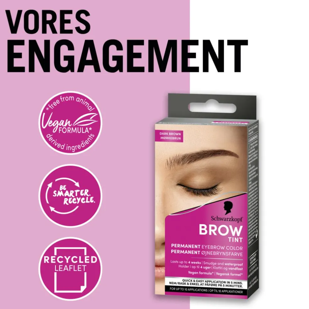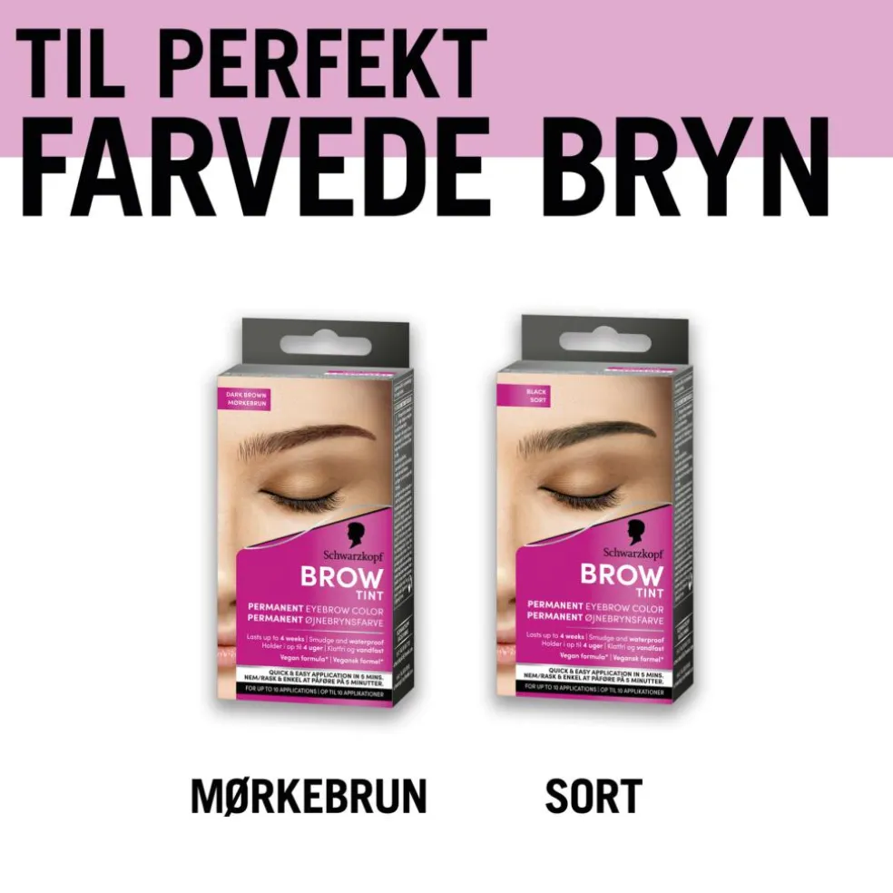 Få smukt farvede øjenbryn, der holder i op til 4 uger. Den veganske øjenbrynsfarve tværes ikke ud og er vandfast, så du får perfekt farvede bryn. Med hurtig og nem påføring takket være den kompakte børste opnås præcision og permanente farveresultater på kun 5-10 minutter. Med mere end 120 års erfaring bag sig tilbyder Schwarzkopf Brow Tint perfekt farvede bryn i professionel kvalitet derhjemme.
