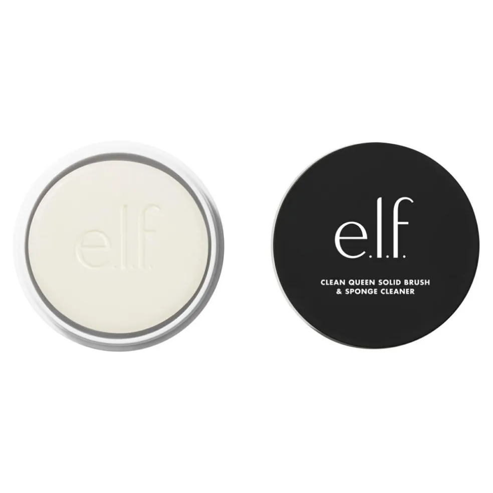 e.l.f. Clean Queen Solid Brush & Sponge Cleaner er en effektiv makeupbørste-rens i fast form, der er designet til at rense, pleje og fjerne pigment og snavs fra dine makeupbørster og -svampe. Denne faste, vandaktiverede sæberens er ideel til at holde dine redskaber i topform.