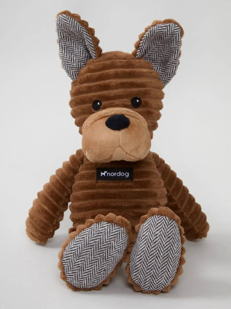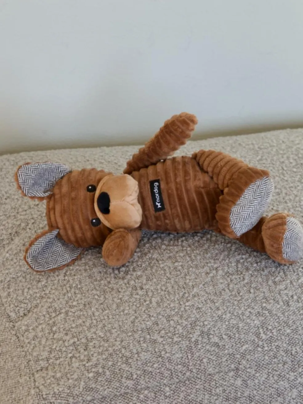 Tyson er en blød polyester bamse, der kan genkendes på den flotte brune farve og de strittende øre med tern, og så har han altid et stort smil på læberne. En blød hundebamse, der med indbygget pivedyr altid er frisk på sjov og ballade.