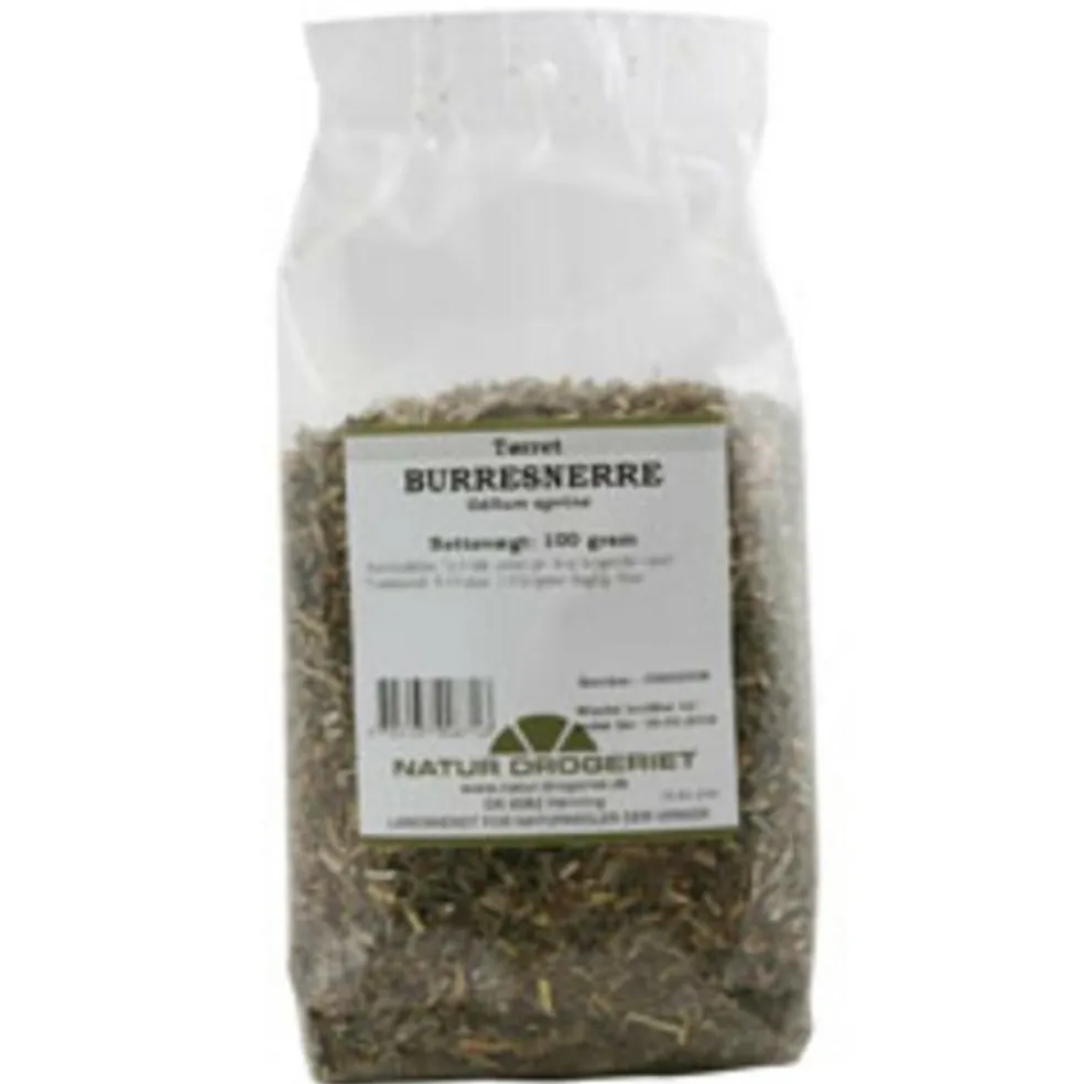 Burresnerre er ofte at finde i de danske haver. Her får du tørret burresnerre fra Natur-Drogeriet, som kan anvendes til urtete.