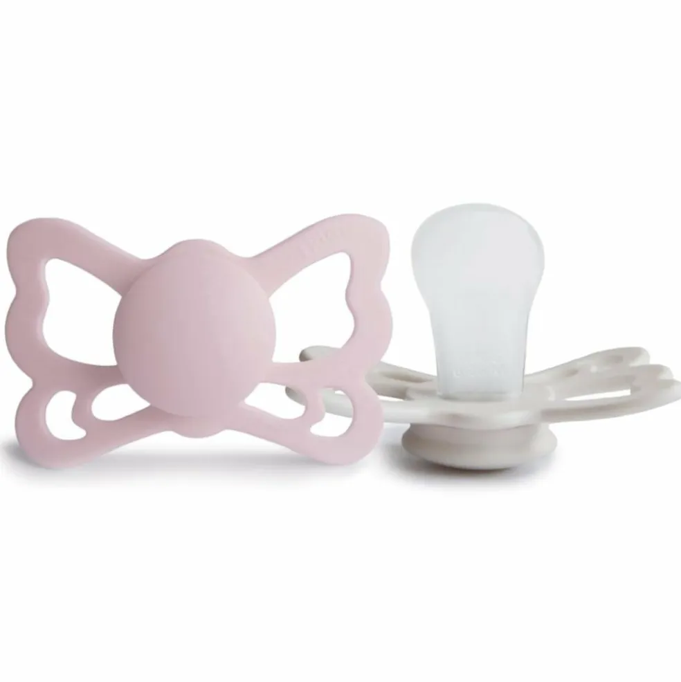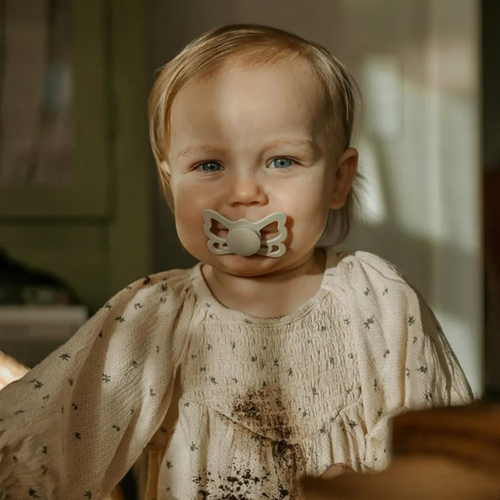 FRIGG Butterfly er en anatomisk sut, der er skabt med en suttedel, der matcher formen på barnets mund. Designet er omhyggeligt udformet for at mindske trykket på ganen, gummerne og kæberne, hvilket gør det til den blideste type sut.