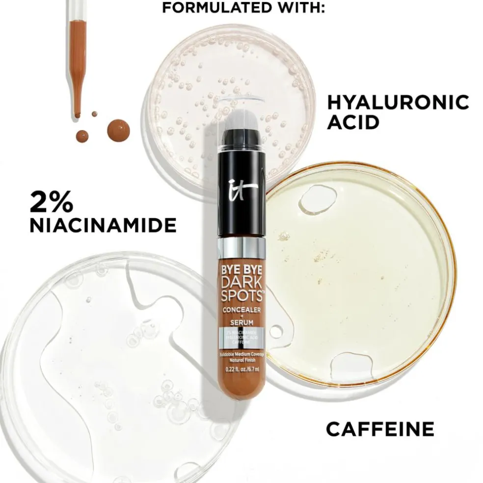 - Dark Spots Concealer + Serum skjuler og dækker samt forbedrer udseendet af mørke pletter og hudens tekstur