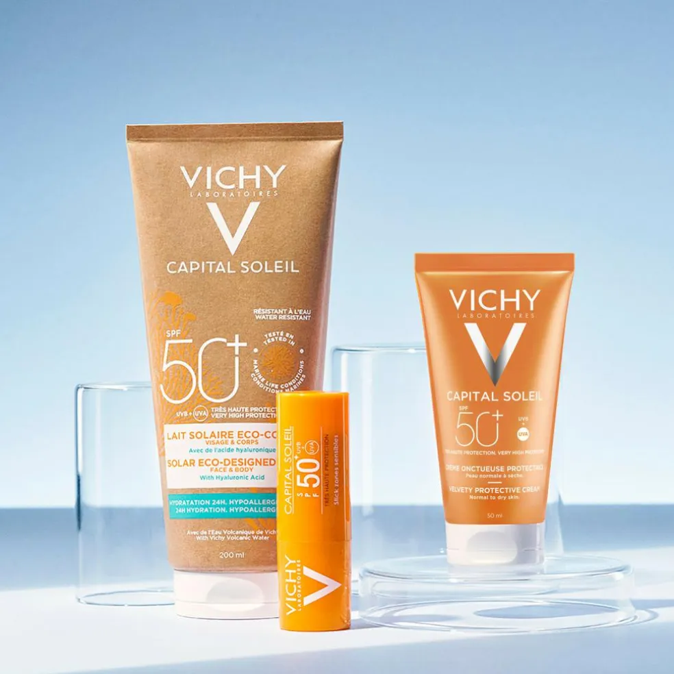 - Hyaluronsyre og vulkansk vand fra Vichy giver en fugtgivende effekt i op til 24 timer