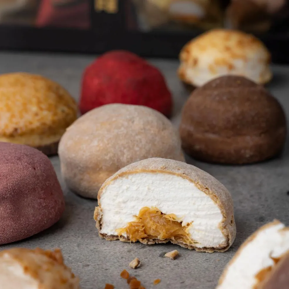 CARAMEL FILLED MALLOWS GIFT BOX indeholder et smagsfyldt udvalg af gourmet skumfiduser med eksklusiv chokolade. Denne gaveæske forener kvalitet og velsmag med fire af vores populære karamelfyldte skumfiduser. Perfekt som en særlig gave eller lidt ekstra selvforkælelse.