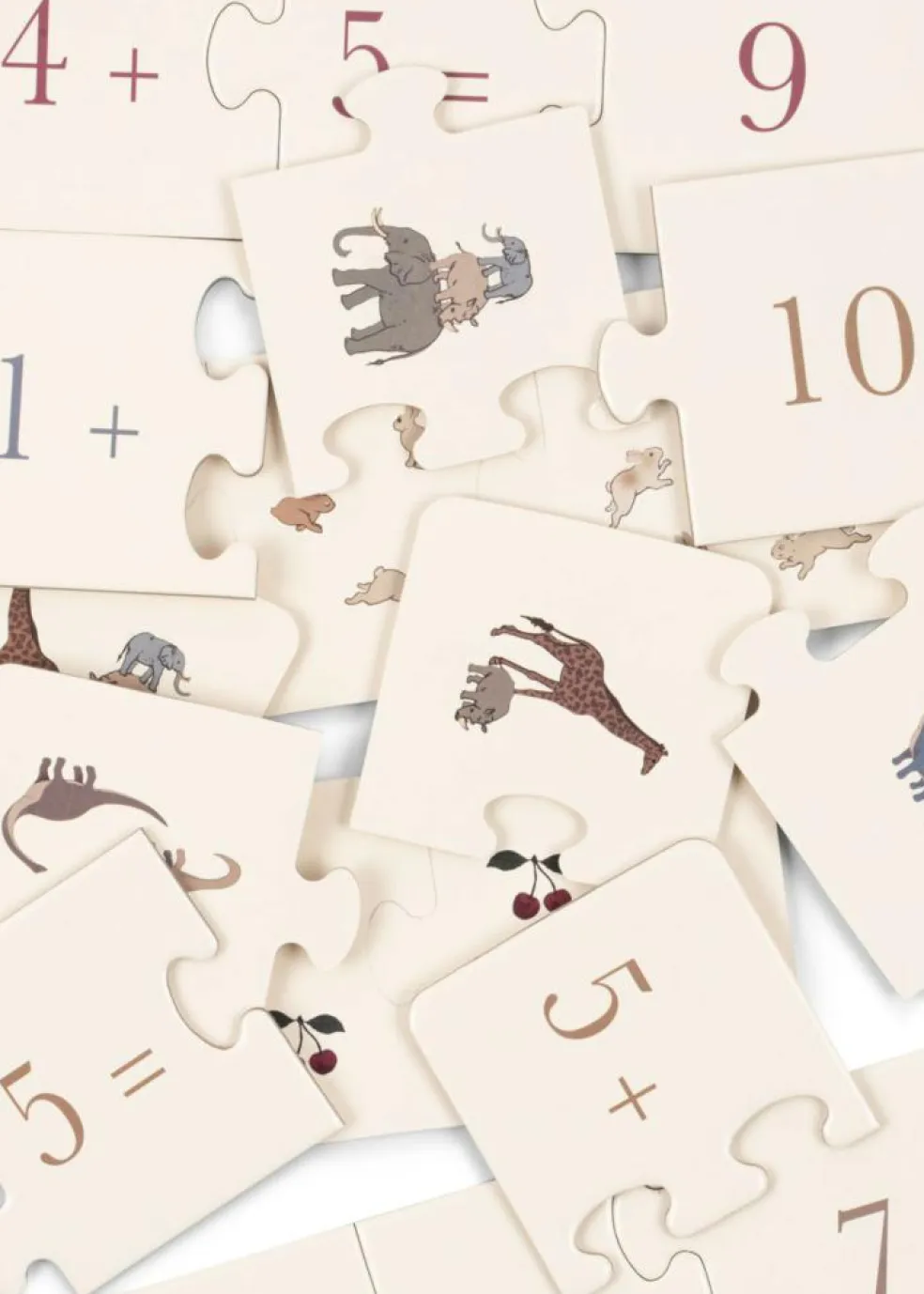 Puslespil med 27 brikker. Match tallene med de rigtige billeder.