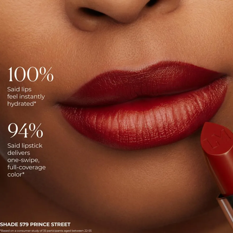 - Smøragtig, cremet finish: Glider på læberne med en smøragtig fornemmelse (97%) og giver en rig, cremet farve (100%).