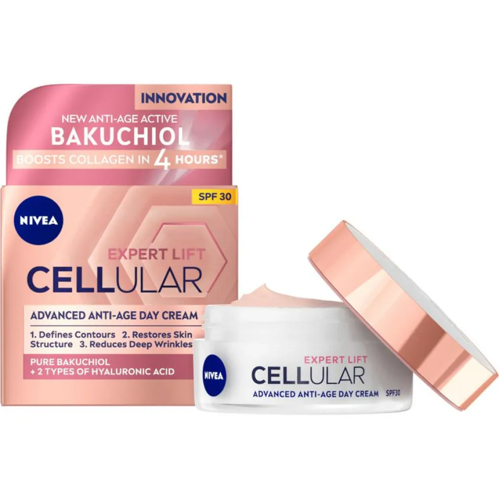 Cellular Expert Lift Day Cream – videnskaben om yngre hud. En yngre hud er en synlig afspejling af cellulær aktivitet dybt inde i hudvævet. Vores avancerede formel indeholder en kombination af kraftfulde anti-age aktive stoffer, der arbejder dybt på celleniveau for få en yngre hud: PURE BAKUCHIOL understøtter cellens kollagenforstærkende aktivitet, der starter 4 timer efter brug og hjælper huden med at forstærke og styrke dens støttefibre.* MIKRO & MAKRO HYALURONSYRE, 2 anti-age must haves, kendt for at fugte, udglatte og hjælpe synligt med at reducere rynker. *testet på hudceller