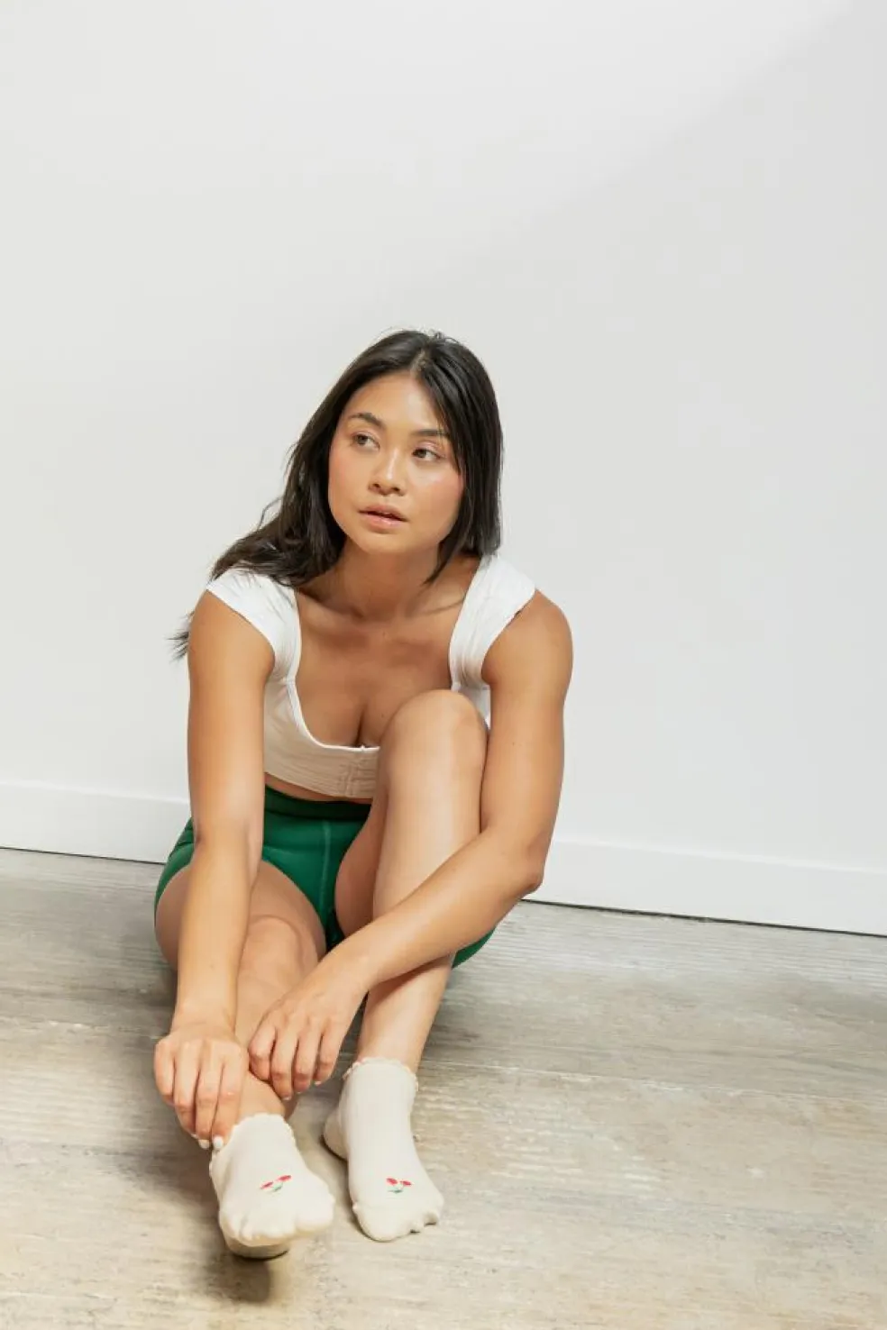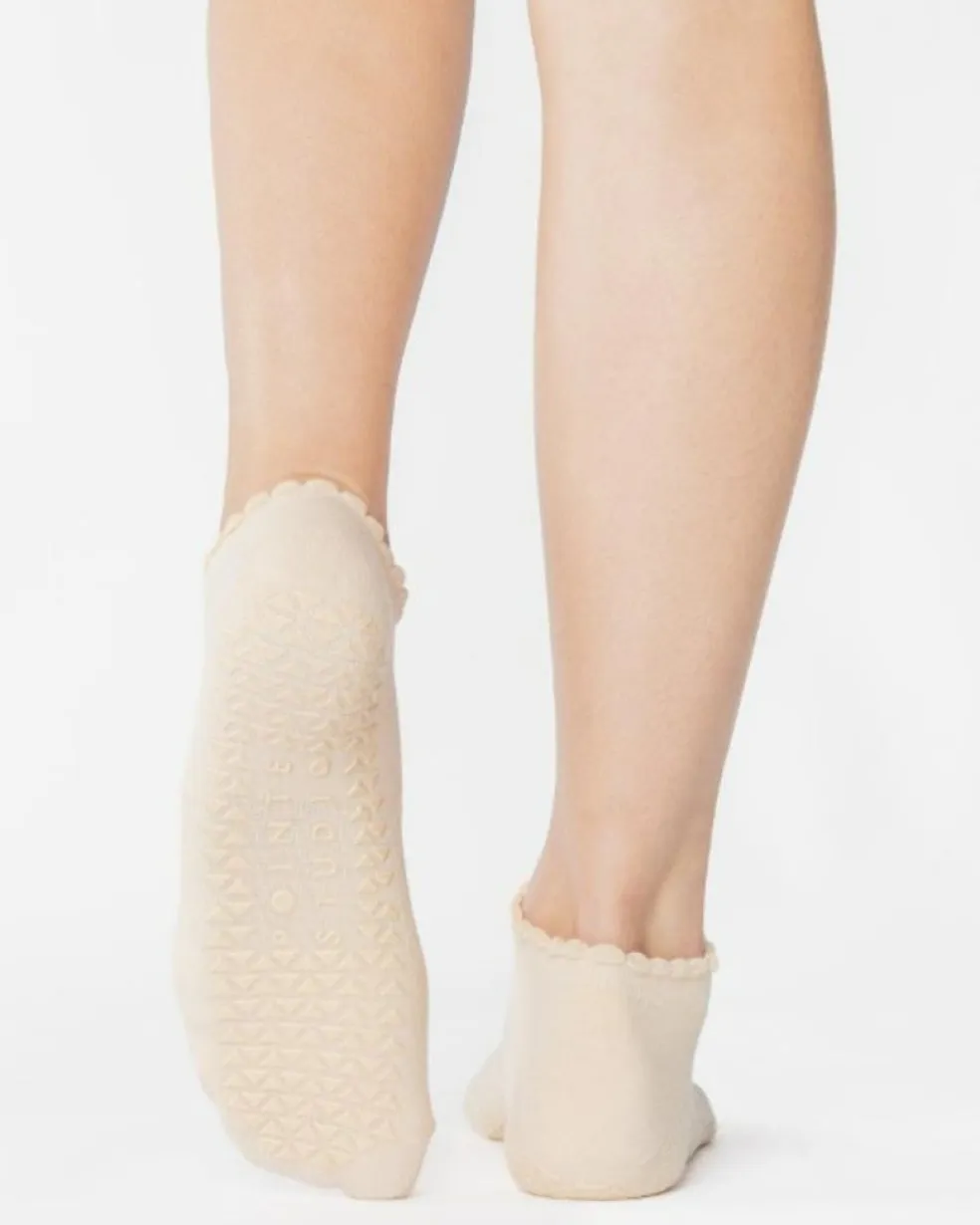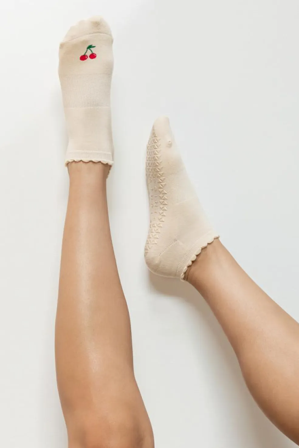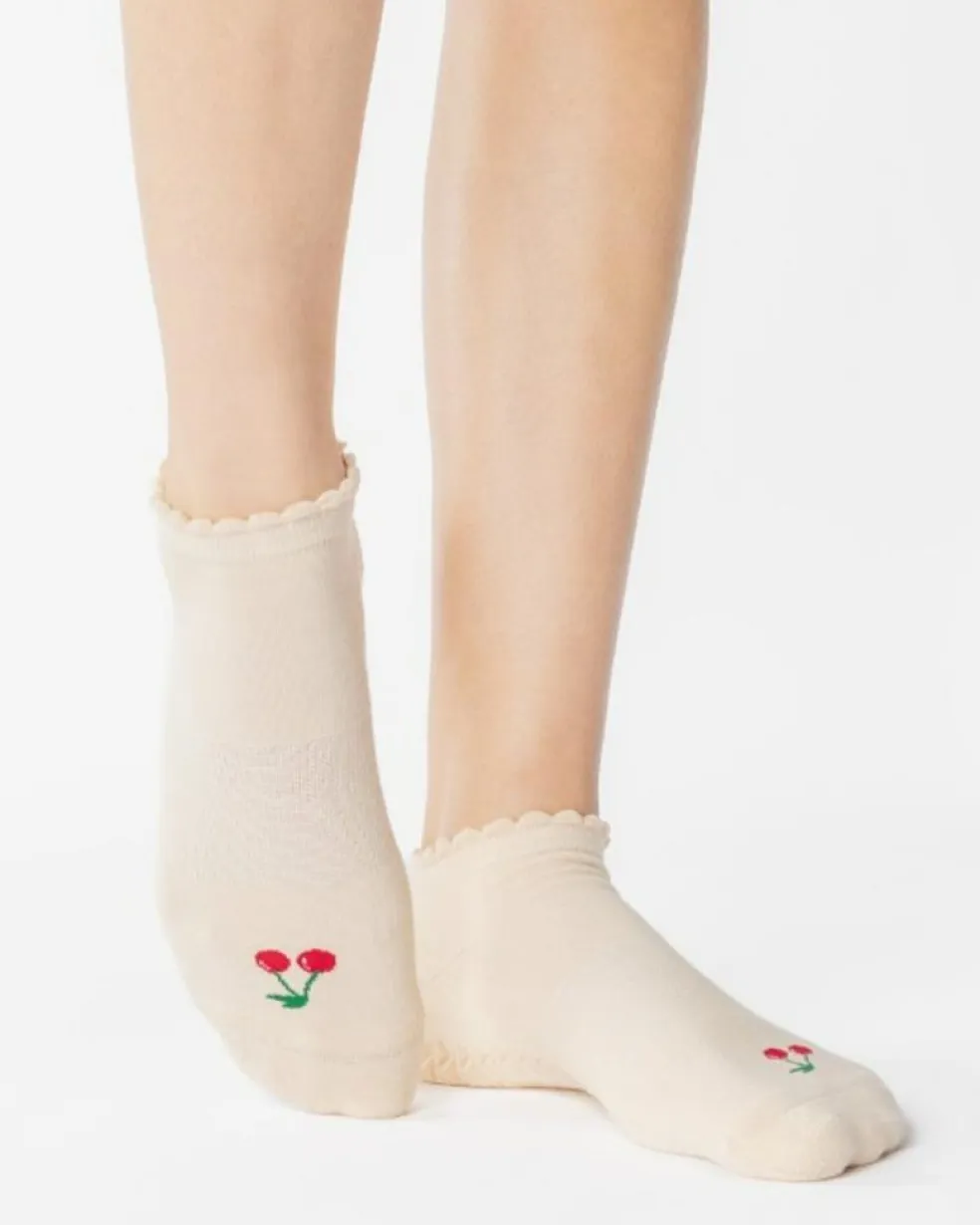 Pointe Studio CHERRY GRIP FULL FOOT Grip Sock, skridsikker gripstrømpertil Yoga, Pilates, Reformer, paddel mm. Farve Ivory, str. 39-42, i 55% organisk Bomuld, 40% Nylon, 5% Spandex.