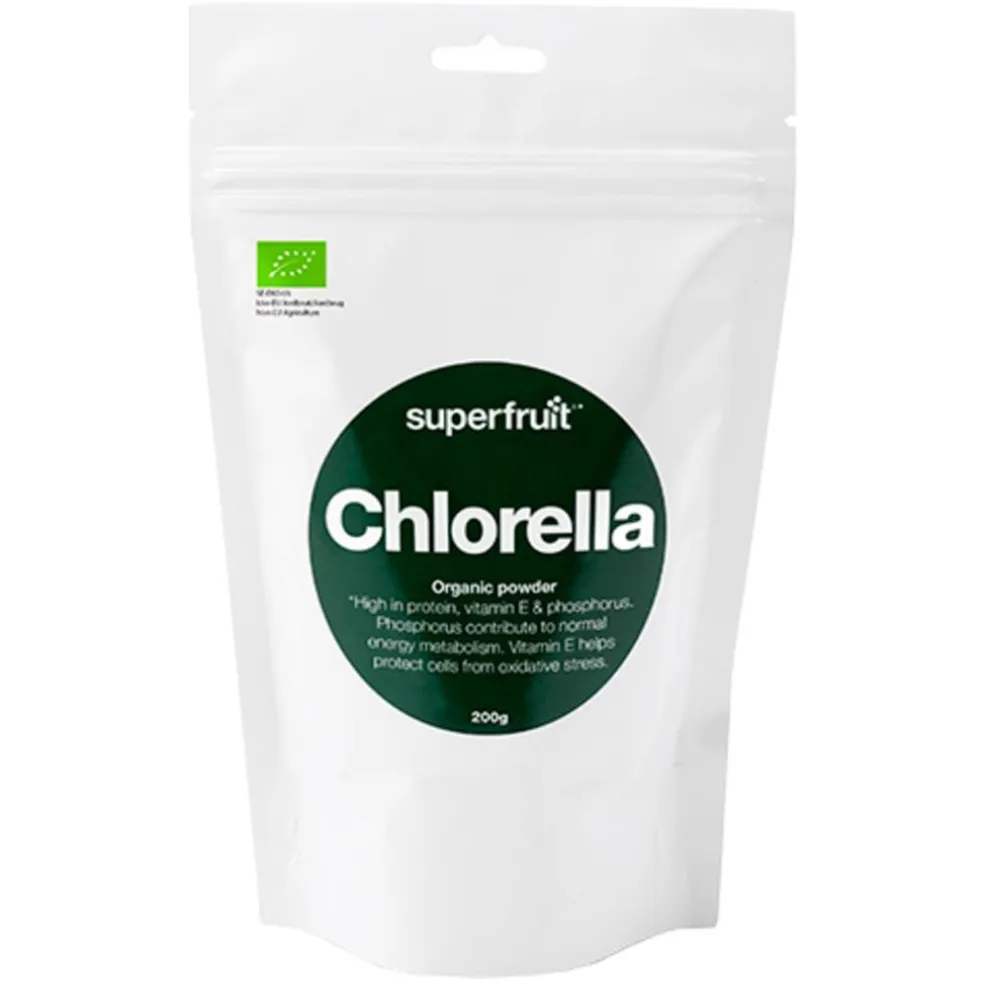 Superfruits chlorellapulver er økologisk certificeret. Chlorella indeholder 60% protein. Superfruits Chlorella dyrkes under kontrollerede forhold og indeholder det grønne farvestof klorofyl.