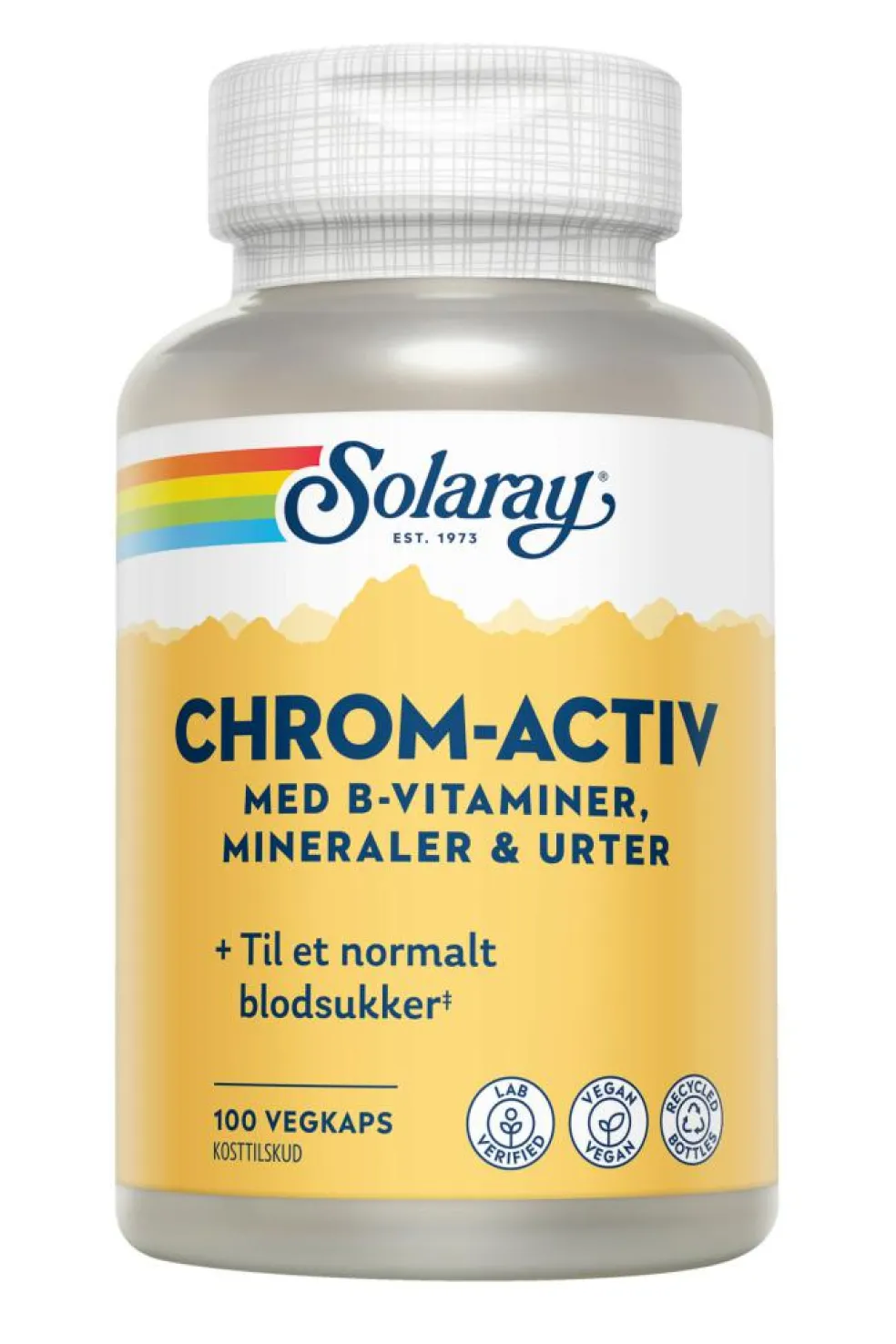 ChromActiv – med mineralet Chrom i kombination med vitaminer, mineraler og urter. Chrom bidrager til at vedligeholde et normalt blodsukkerniveau, samt til en normal omsætning af makronæringsstoffer.