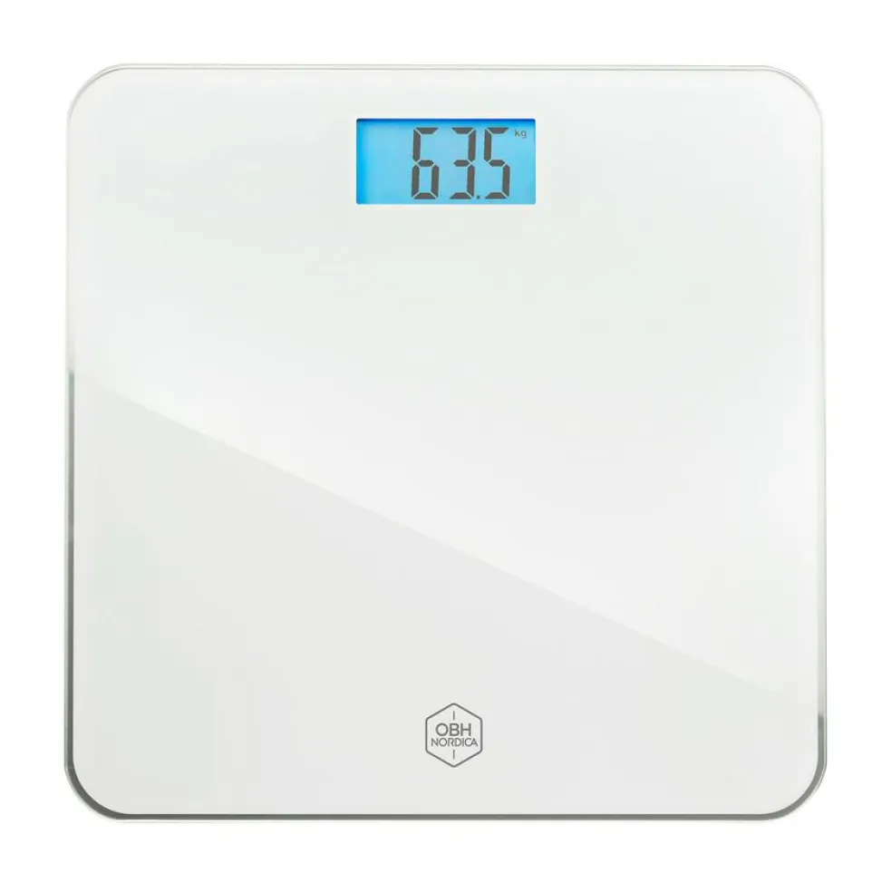Den klassiske personvægt har afrundede kanter og glasoverflade og passer på ethvert badeværelse.