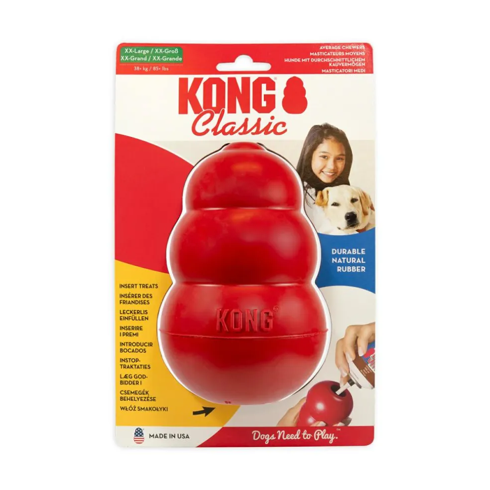 KONG Classic er guldstandarden for hundelegetøj og er blevet basis for hunde over hele verden i over fyrre år.
