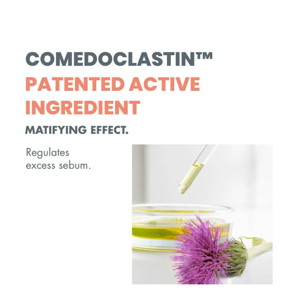 - Comedoclastin™: Plantebaseret aktiv ingrediens med talgregulerende og anti-komedon effekt