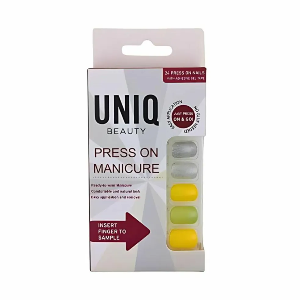 Få salon-kvalitets negle på ingen tid med UNIQ Click On / Press On Manicure Negle. I pakken finder du 24 Press on negle i forskellige pastelfarver og glimmer. Neglene er designet til at give en naturlig længde med den ovale form.