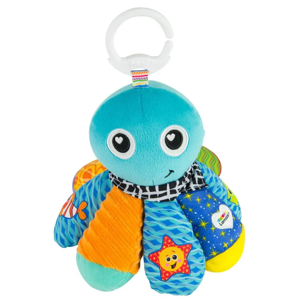 Dette legetøj er fyldt med spændende teksturer og knitrende lyde, der gør det sjovt at gribe og klemme Salty Sam. Han har også en pivelyd og en klokke, som hjælper med at udvikle både babys høresans og følesans.