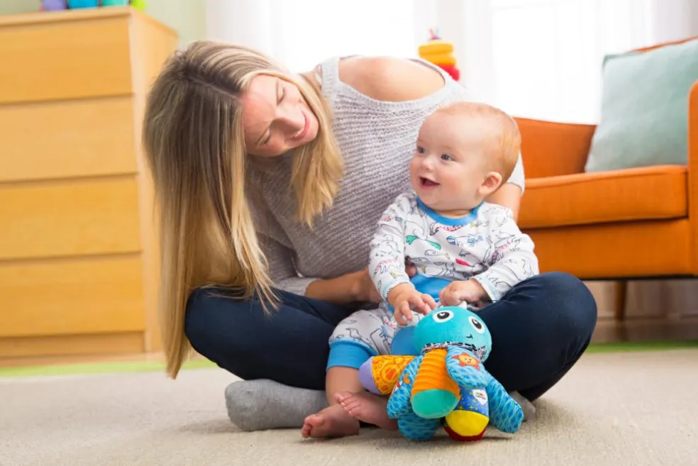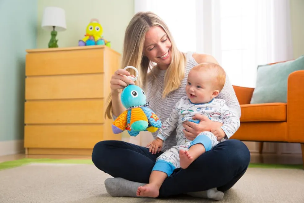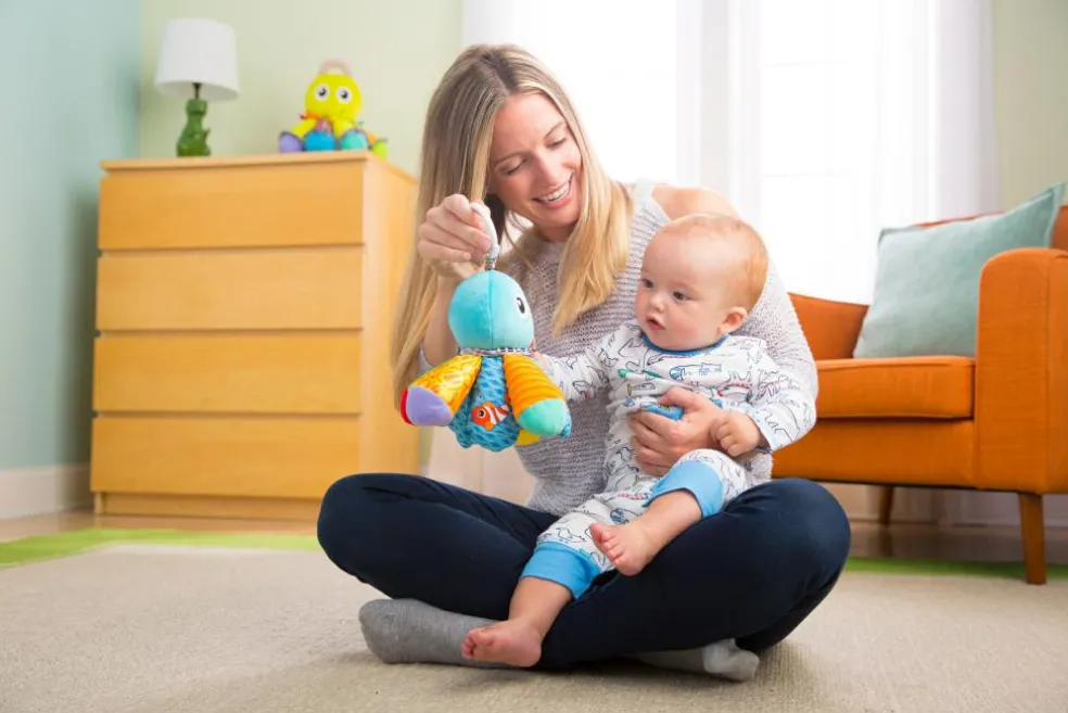 Salty Sam har højkontrastmønstre, et titte-bøh-spejl og klare farver, som gør legetiden ekstra spændende og stimulerer babys syn.