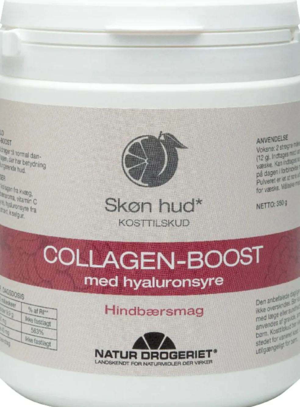 Collagen-Boost med hyaluronsyre er en pulverblanding, der indeholder peptider fra hydrolyseret kollagen fra kvæg. Derudover indeholder blandingen hyaluronsyre, kiselpulver og C-vitamin.