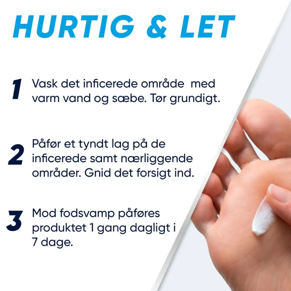 Påfør cremen i et tyndt lag. Vær opmærksom på, at hele området med svamp er dækket.