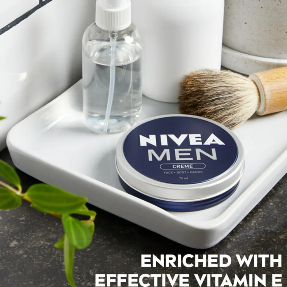 NIVEA MEN Creme er både til ansigt, krop og dine hænder. Cremen er frisk og plejer din hud ved at give den et fugtighedsboost, så den ikke tørrer ud. Den lette formel absorberes hurtigt og er hverken fedtet eller klistret. NIVEA MEN® Creme er specialudviklet til mænd og egnet til ansigt, krop og hænder – faktisk alle steder, hvor din hud har brug for den. Let at bruge. Cremen er dermatologisk godkendt.