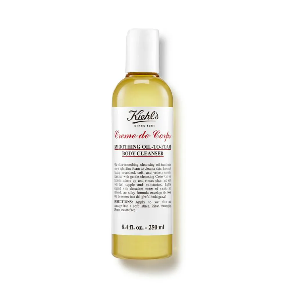 Kiehl’s Creme de Corps Smoothing Oil to Foam Body Cleanser er en fugtgivende renseolie til kroppen som bliver til en let og fin skum ved kontakt med vand.