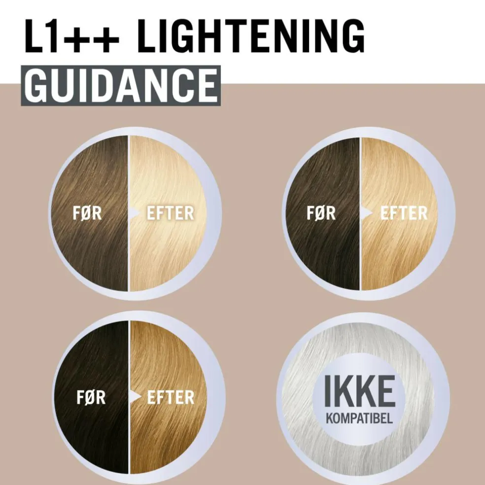 Anvendelse: Følg sikkerhedsinstruktionerne i brugervejledningen eller videovejledningen, der er tilgængelig via QR-koden. Denne nuance er beregnet til mellembrunt til sort hår. Vælg den lysere nuance, hvis du ikke kan vælge mellem to nuancer. Denne nuance er beregnet til op til 100% gråt hår. Farveresultatet afhænger af din naturlige hårfarve.
