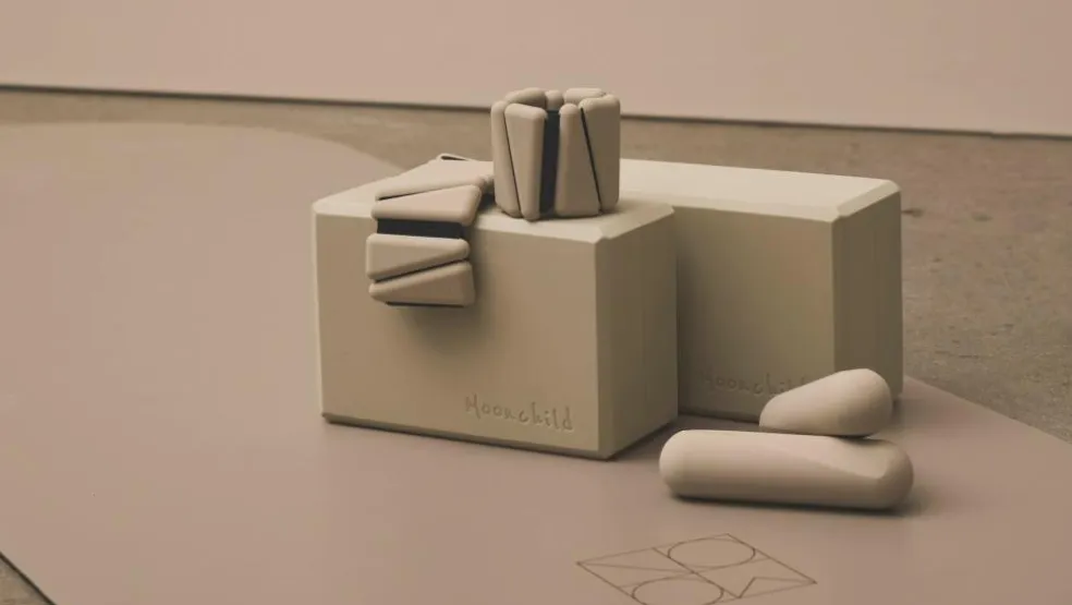 Yogamåtten har smukt indgraveret design med Moonchild’s karakteristiske månefaser og peace tegn.