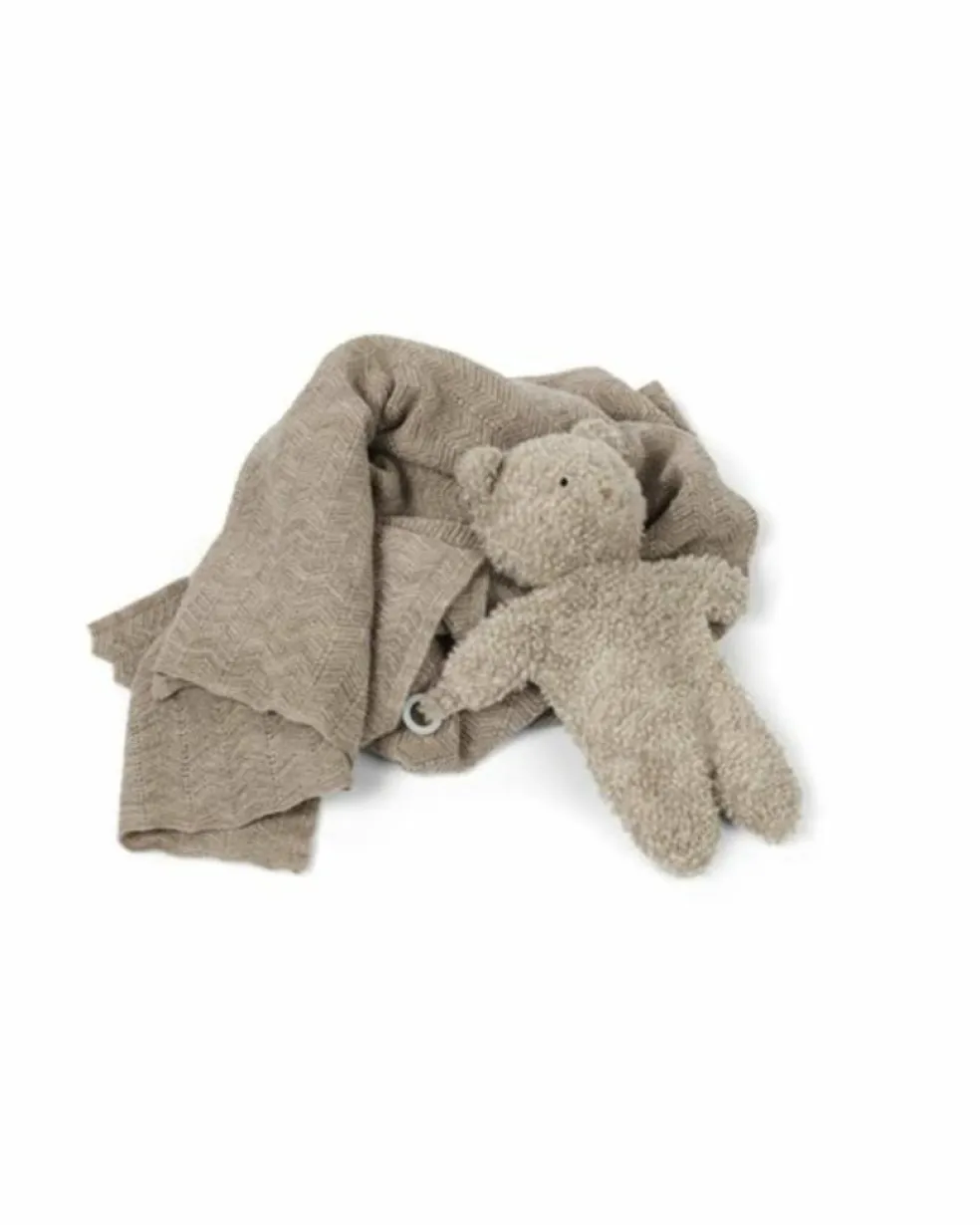 Skøn merino uld nusseklud som er formet som en sød bamse 80% merino uld 20% polyester bouclé garn . Uldkvaliteten gør, at barnet ikke bliver våd og fugtig PET fyld (genanvendte plastik flasker)