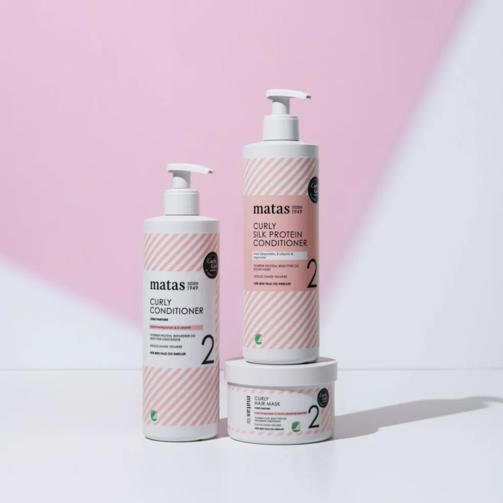 Alle Matas Curly produkter er godkendt til Curly Girl metoden. Conditioneren er ideelt til et hår der i balance, fordi den er beriget med fugtgivende ingredienser og en lille mængde hvedeprotein.