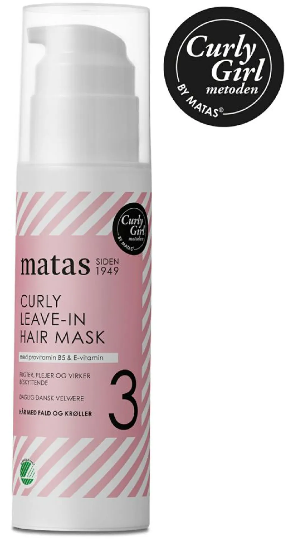 Alle Matas Curly produkter er godkendt til Curly Girl metoden. Matas Curly Leave-in Hair Mask er beriget med fugtgivende ingredienser og ingen proteiner.