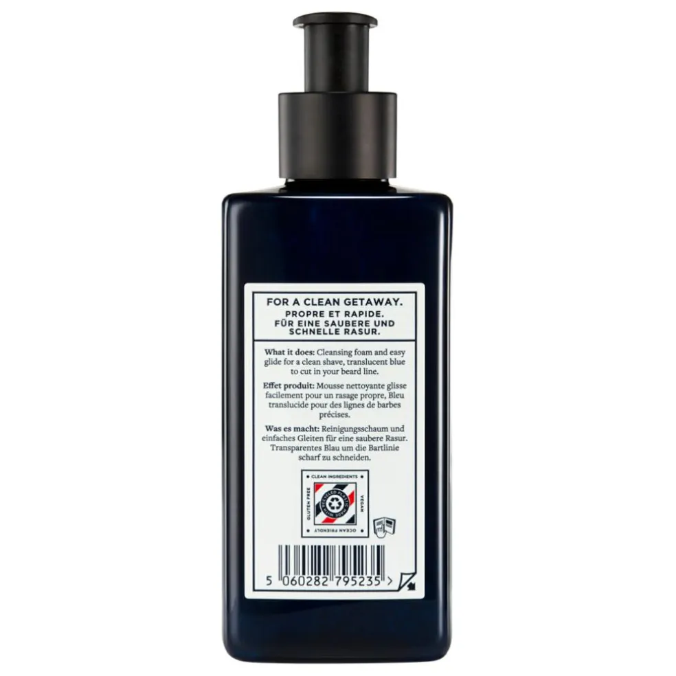 Den lette geltekstur gør det nemt at se, hvor man barberer, hvilket gør den ideel til konturarbejde og præcis styling. Gelen er beriget med glycerin, som fugter og beskytter huden, mens eukalyptus virker beroligende og forfriskende. Salicylsyre hjælper med at rense porerne og forebygger indgroede hår.