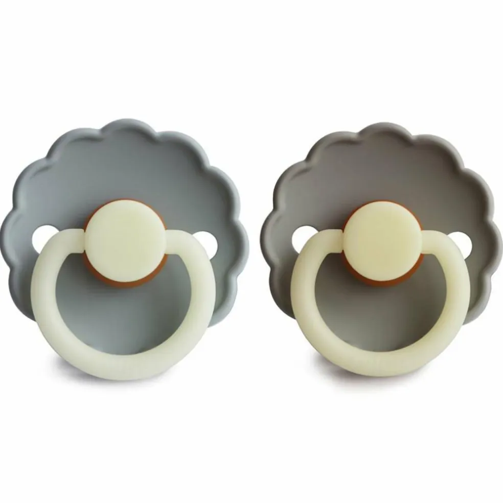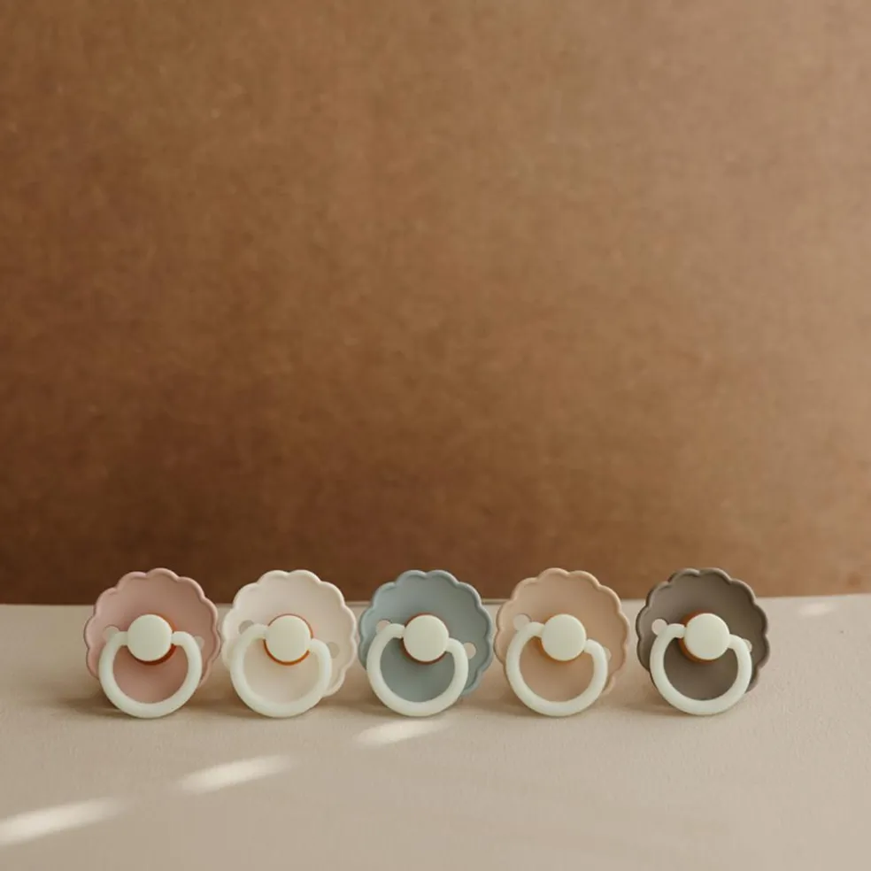 De runde Daisy-sutter fra FRIGG er en klassiker, der er elsket af mange. Denne runde form minder om moderens bryst og giver barnet en naturlig og tryg fornemmelse. Derfor vil mange børn acceptere den runde sut med det samme, den tilbydes.