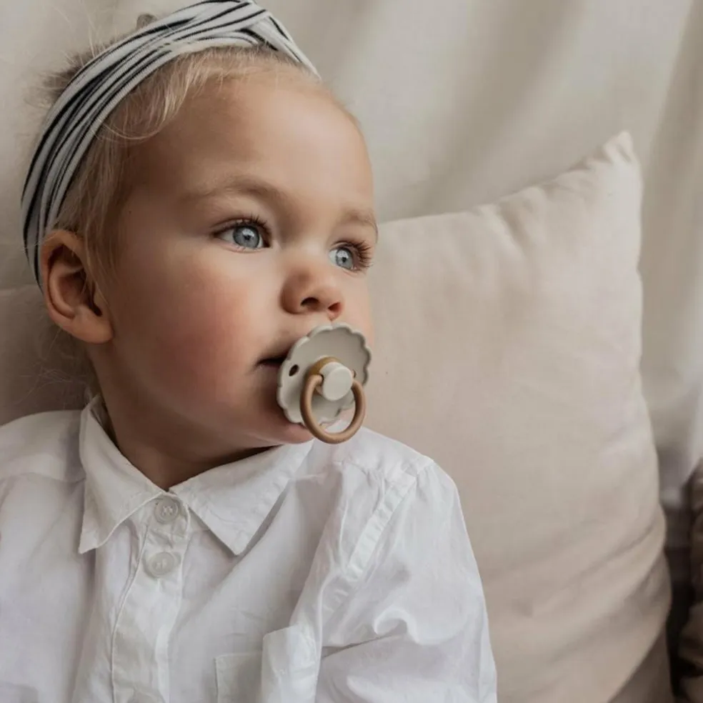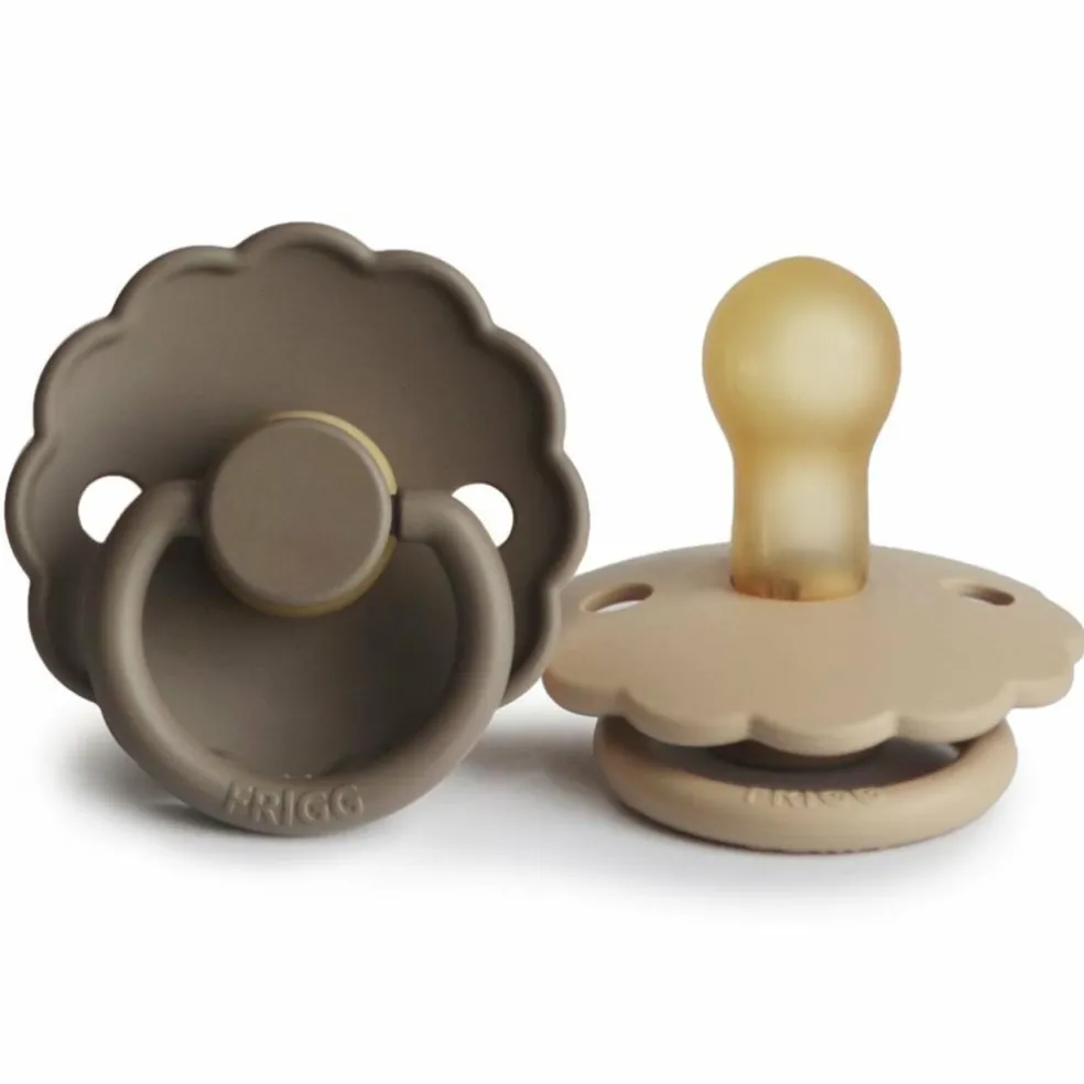 De runde Daisy-sutter fra FRIGG er en klassiker, der er elsket af mange. Denne runde form minder om moderens bryst og giver barnet en naturlig og tryg fornemmelse. Derfor vil mange børn acceptere den runde sut med det samme, den tilbydes.