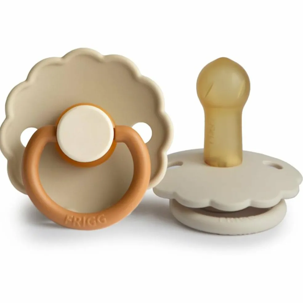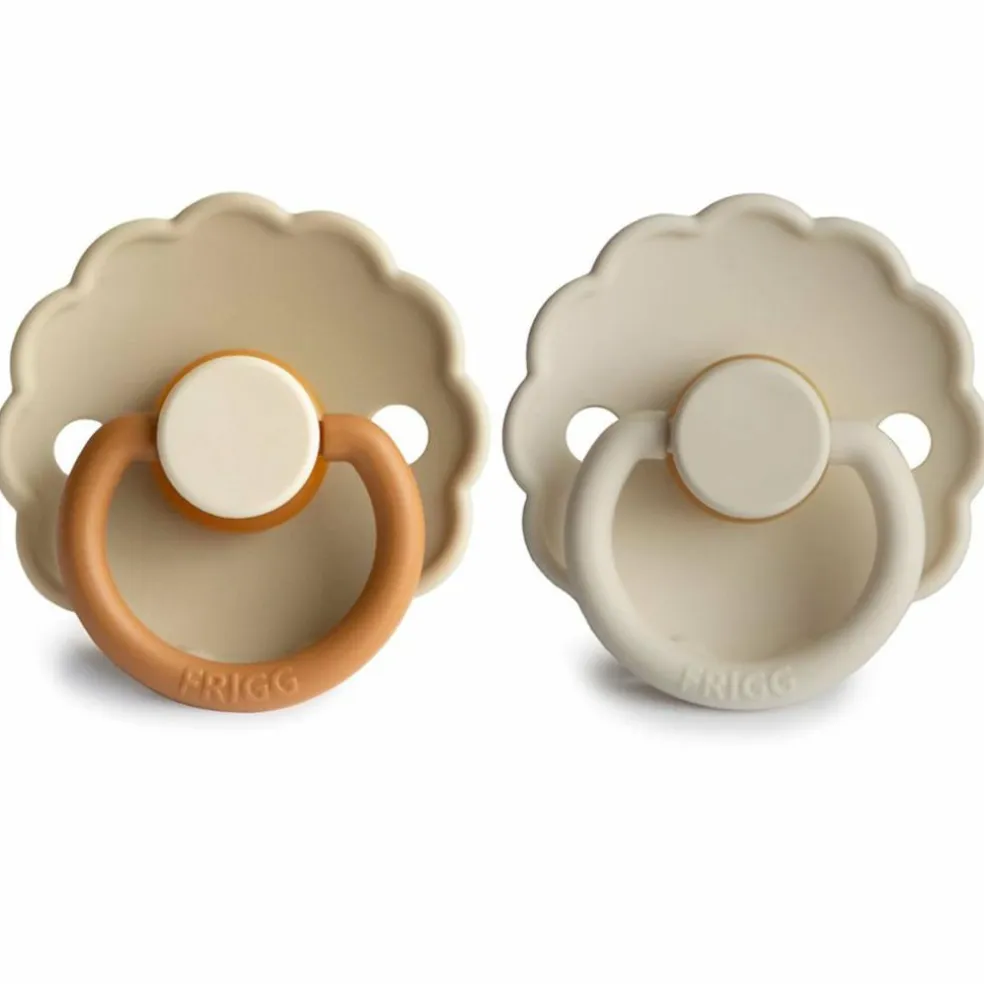 De runde Daisy-sutter fra FRIGG er en klassiker, der er elsket af mange. Denne runde form minder om moderens bryst og giver barnet en naturlig og tryg fornemmelse. Derfor vil mange børn acceptere den runde sut med det samme, den tilbydes.
