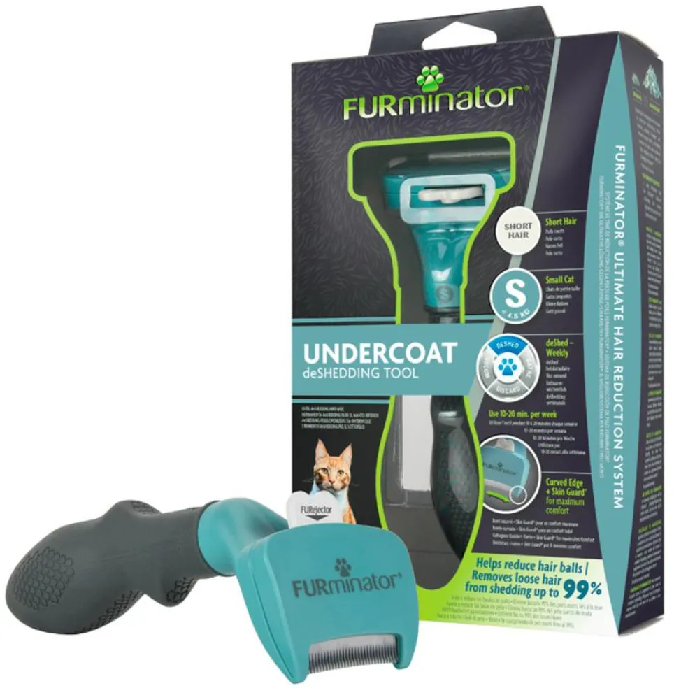 FURminator® Undercoat deShedding Tool for Small Short Hair Cat fjerner op til 99% af de løse hår, så de ikke fældes i omgivelserne. Hjælper også med at mindske dannelsen af hårknolde.